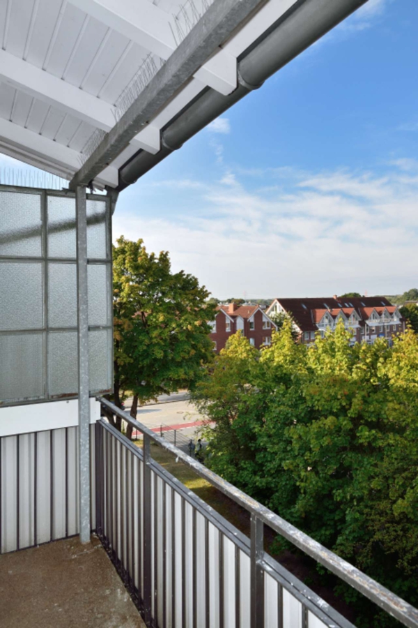 Vom Wohnzimmer aus gelangt man auf den Balkon. Die Wohnung überzeugt durch ihren praktischen Schnitt, helle Räume und den neuwertigen Zustand nach der Sanierung.