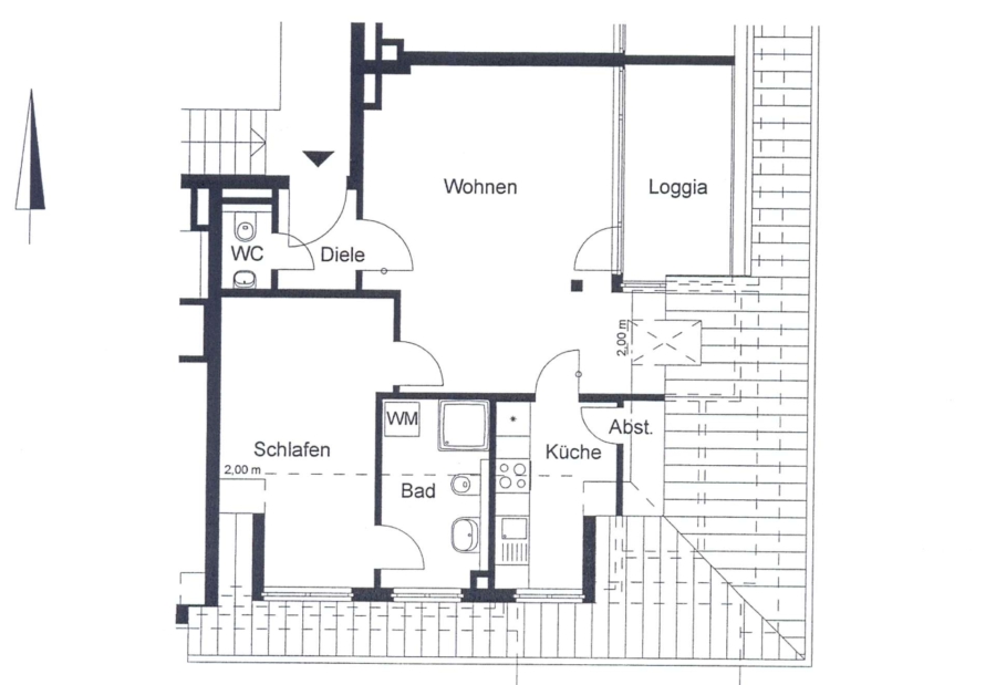 Es handelt sich um versetzte Geschosslagen; je Halbgeschoss sind 2 Wohnungen angeordnet.