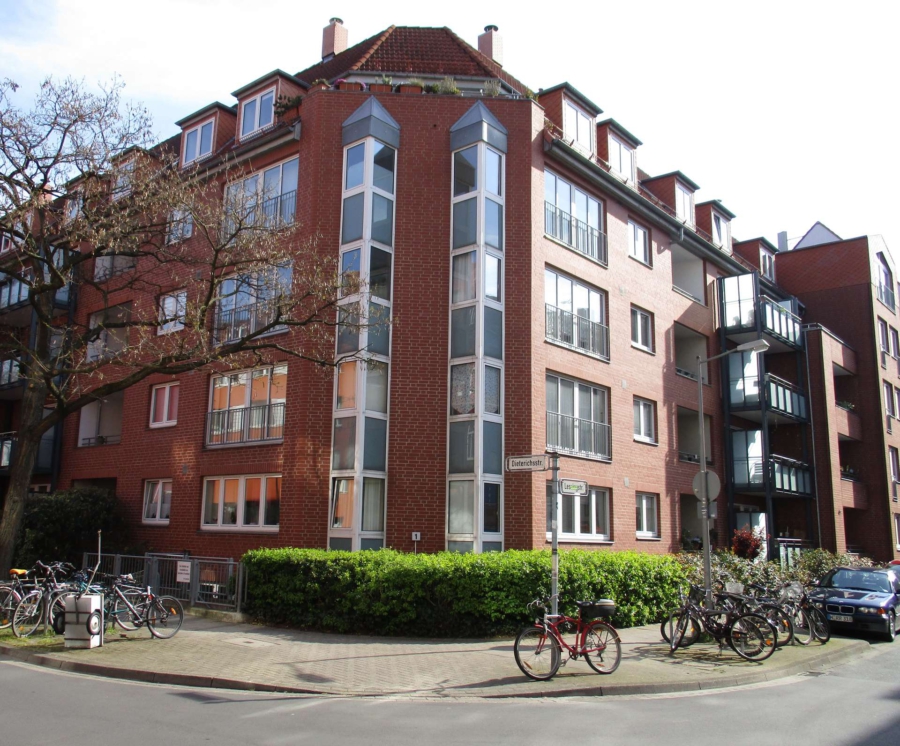 Es handelt sich um eine großzügige Wohnanlage, die entlang der Dieterichs-/Lessingstraße verläuft. Das Eckgebäude verfügt über 3 Hauseingänge, die alle jeweils mit Personenaufzügen, Trockenräumen und Fahrradkellern ausgestattet sind. Eine große Gartenanlage im Innenhof ist mit zusätzlichen Fahrradstellplätzen versehen.